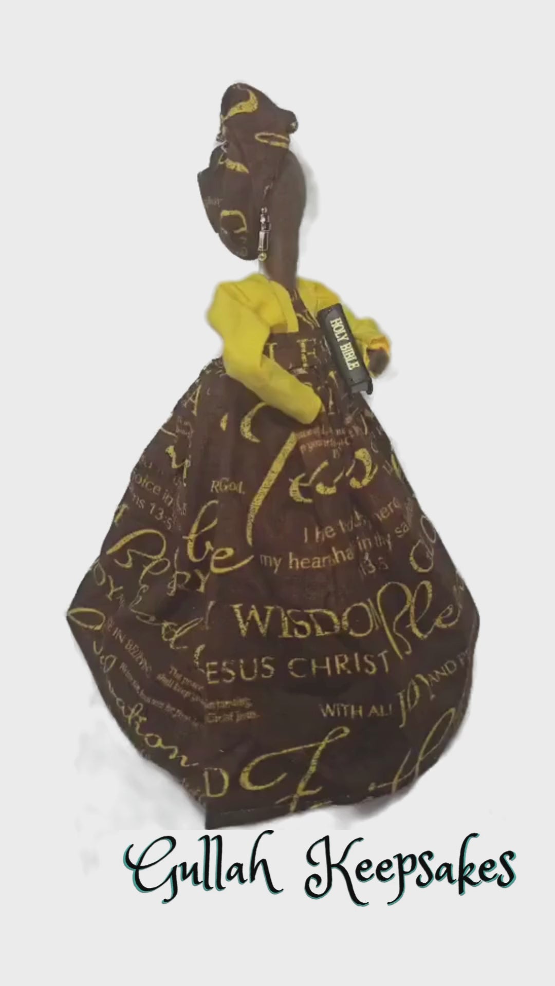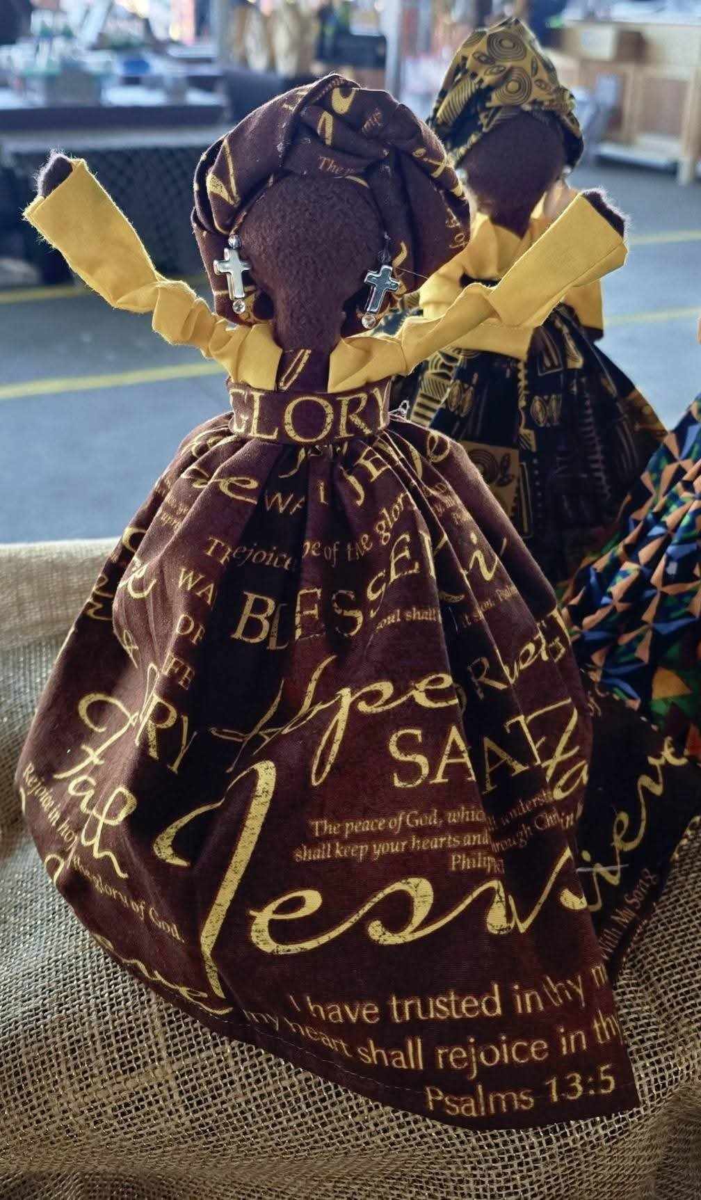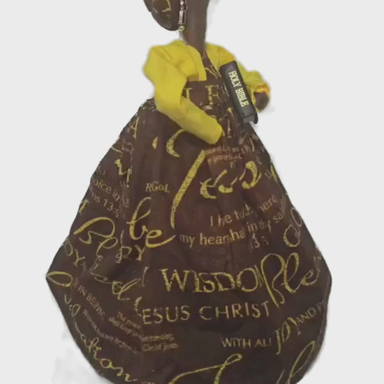 This Gullah Keepsakes handmade in Charleston Gullah Doll features scriptures from the King James Version of the Bible