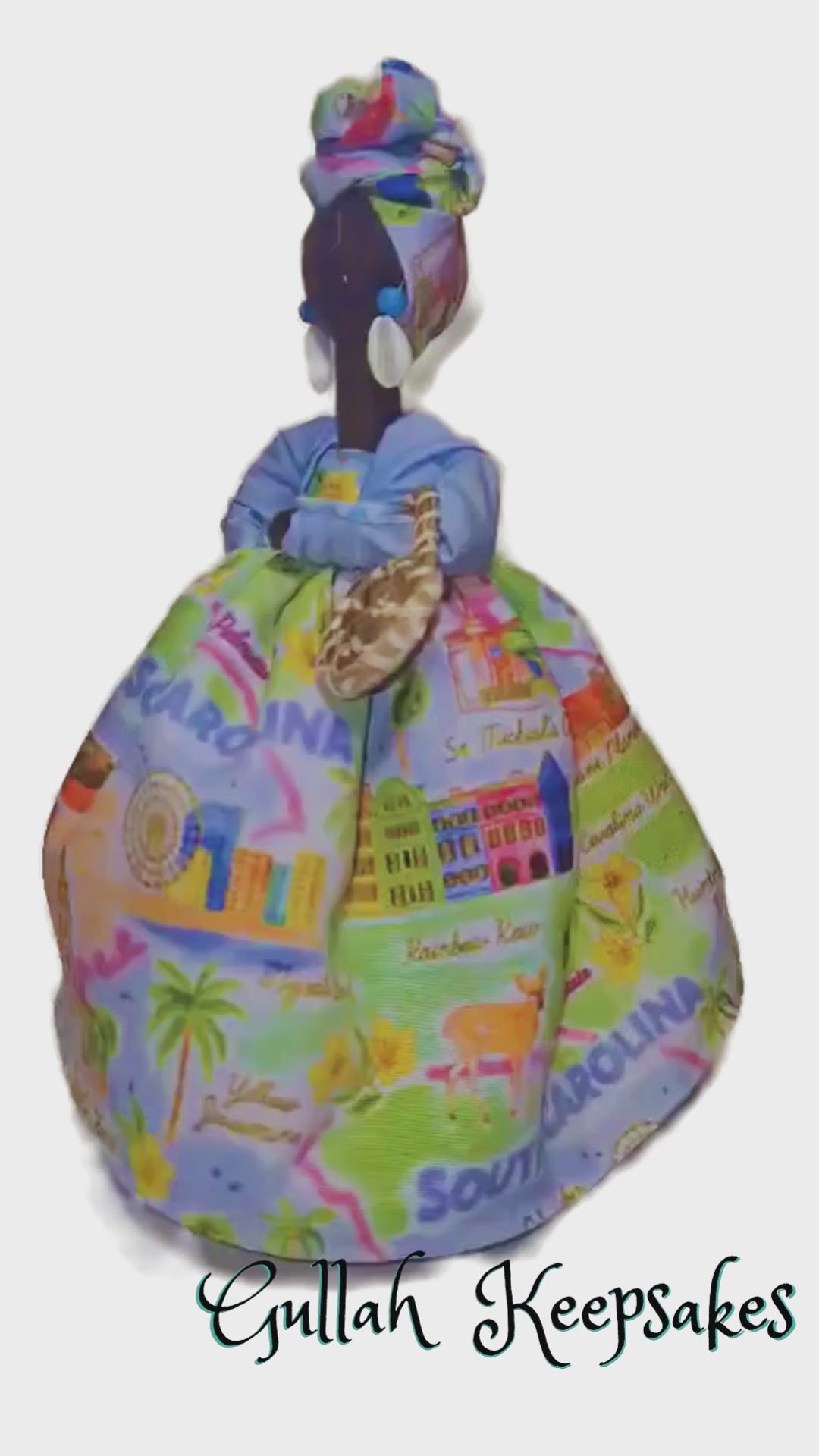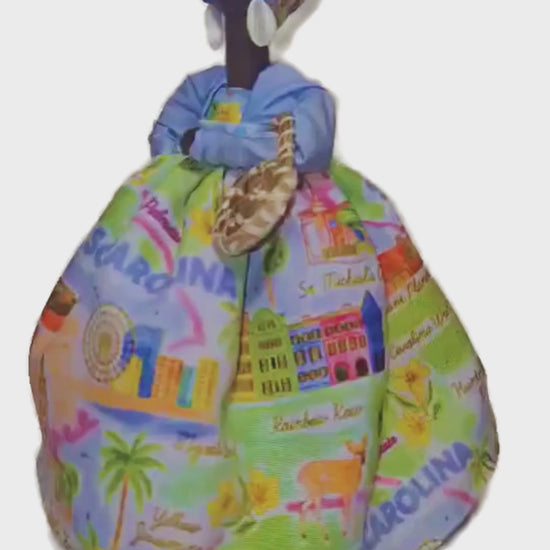 Charleston Gullah Doll is a Gullah Keepsakes Exclusive. This handmade doll boost Charleston historical sites like Rainbow Row, Drayton Hall Plantation, and St Chapel. Symbolic South Carolina state facts such as the beautiful .State Bird, Carolina Wren and the State Tree, the Palmetto. You will only find Sista South Carolina here at Gullah Keepsakes